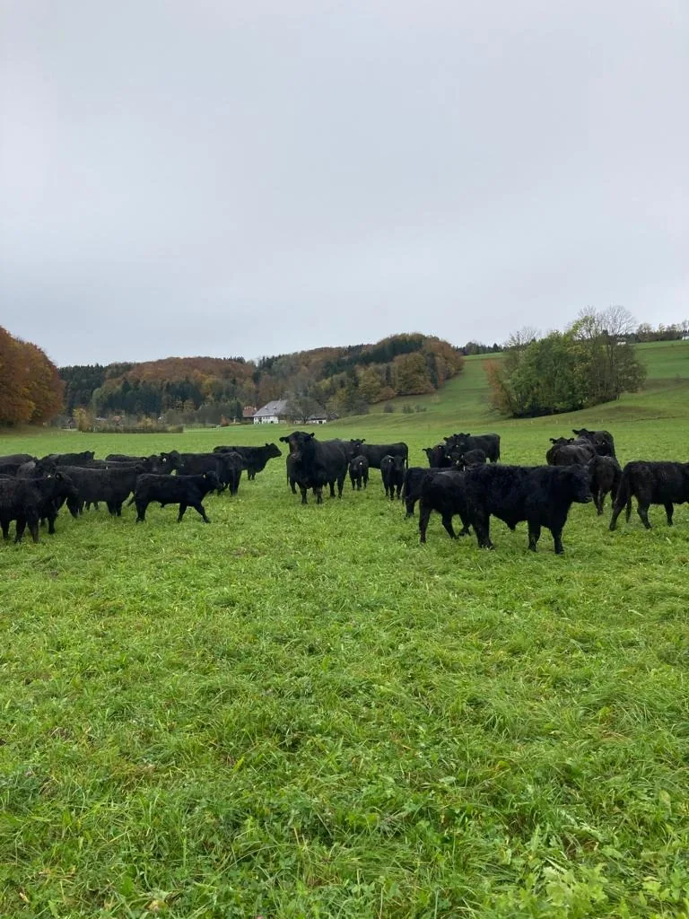 Eine etwas andere Art von Landwirtschaft. Nehmen und geben, sich um sie kümmern — ohne sich übermäßig einzumischen. Unsere Galloways ziehen frei über die Weiden am Attersee.