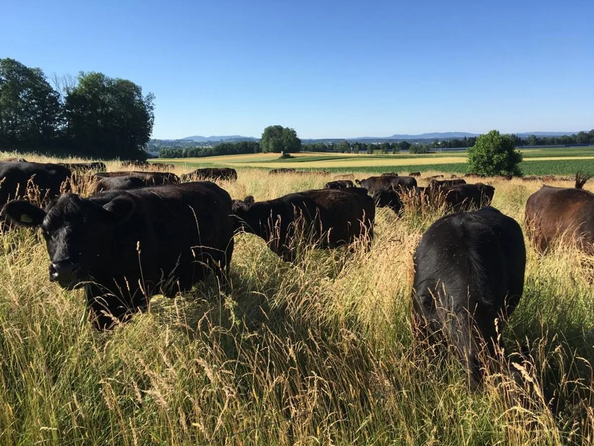 Die Tiere dürfen frei über die Weiden ziehen, wie es ihnen gefällt. Keine Anbindung, kein Stress, keine Spaltenböden.